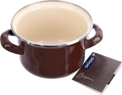 La casserole de la série Brown allie look classique et performance fiable. Sa surface émaillée est hygiénique, résistante aux taches et aux odeurs, et convient aux personnes allergiques. La glaçure intérieure beige facilite le contrôle de la cuisson, tandis que le bord inox renforce la durabilité et la longévité.