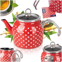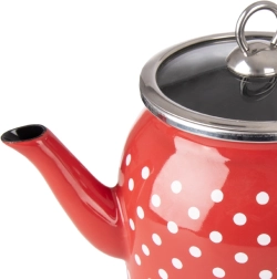 La bouilloire émaillée TEČKA associe look rétro et fonctionnalité moderne. Le rouge à pois blancs est complété par un bord et une anse en inox, l’intérieur est d’un élégant noir. Le couvercle en verre permet de surveiller facilement l’ébullition et, grâce à sa poignée, se soulève aisément pour le remplissage.