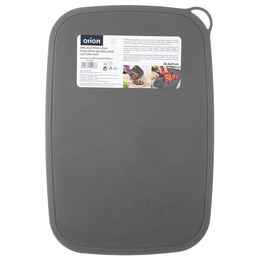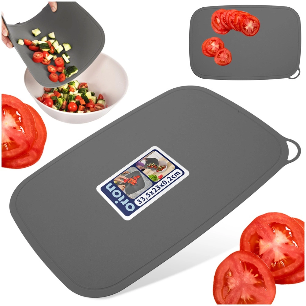 Pratique planche à découper élastique en plastique de qualité, couleur grise, dimensions 33,5 × 23 × 0,1 cm. Grâce à sa conception flexible, vous versez facilement les ingrédients coupés directement dans un bol ou une casserole ; la planche est silencieuse, légère et préserve le tranchant des couteaux. Compatible lave-vaisselle et résistante jusqu’à +95 °C. Qualité ORION pour chaque cuisine.