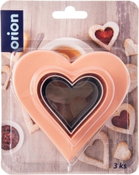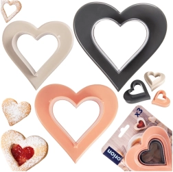 Lot de trois emporte-pièces double face en forme de cœur pour réaliser facilement biscuits, pain d’épices et décorations. Grâce aux deux bords tranchants, créez des petits cœurs garnis ou l’effet cœur dans le cœur. Conception en plastique résistante en différentes tailles, entretien facile et compatible lave-vaisselle.