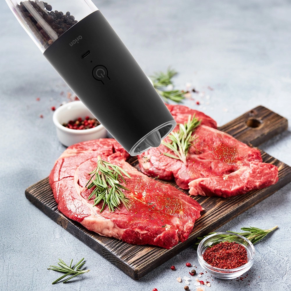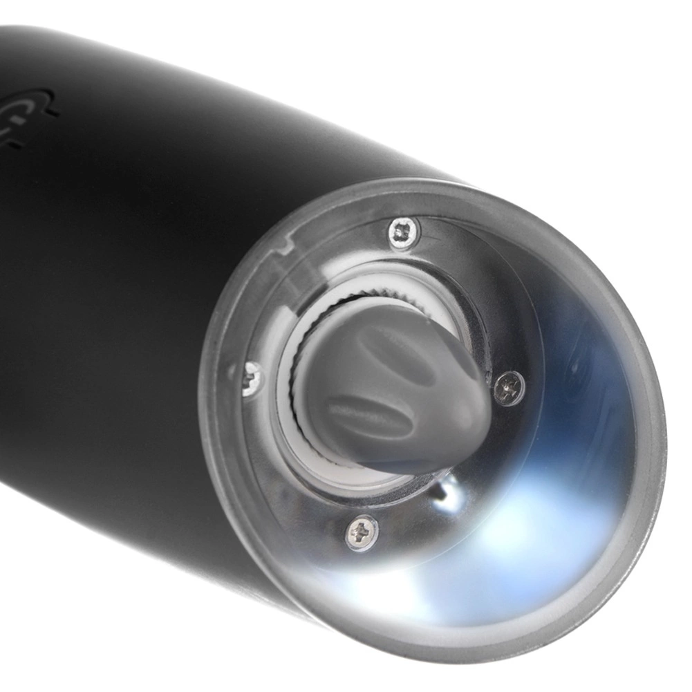 La LED intégrée et le démarrage automatique par inclinaison facilitent un assaisonnement précis directement dans l’assiette ou la poêle d’une seule main.