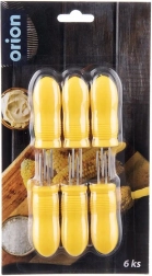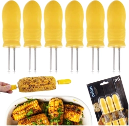 Profitez du maïs en épi sans doigts sales ni brûlés. Ce lot de six piques offre une prise ferme grâce aux poignées jaunes rainurées et à deux pointes en acier inoxydable sur chaque pièce. Il suffit de les enfoncer dans les deux extrémités de l’épi pour servir et manger avec un maximum de confort.