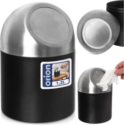 Poubelle compacte d’un volume de 1,2 l avec couvercle basculant, combinant acier inoxydable et corps noir mat pour un look élégant dans la salle de bain, sur la coiffeuse ou le bureau. Jet à une main, limitation des odeurs et nettoyage rapide grâce à la surface lisse.