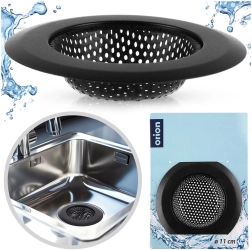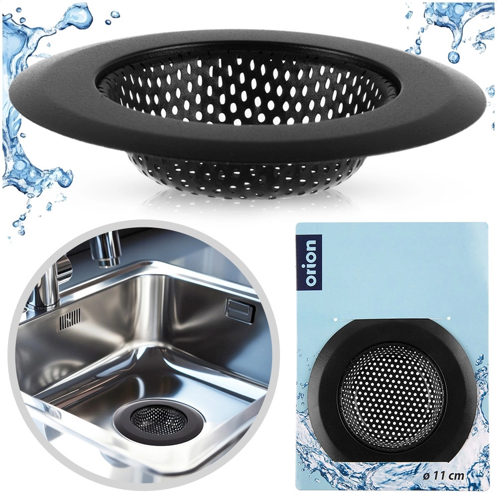 Pratique passoire de cuisine pour évier, diamètre 11,5 cm, en acier inoxydable résistant avec finition noire, retient efficacement les restes de nourriture et les impuretés. Assure une protection efficace de l’évacuation, est facile à retirer et à nettoyer et, grâce à ses dimensions universelles, convient à la plupart des éviers, lavabos et douches.