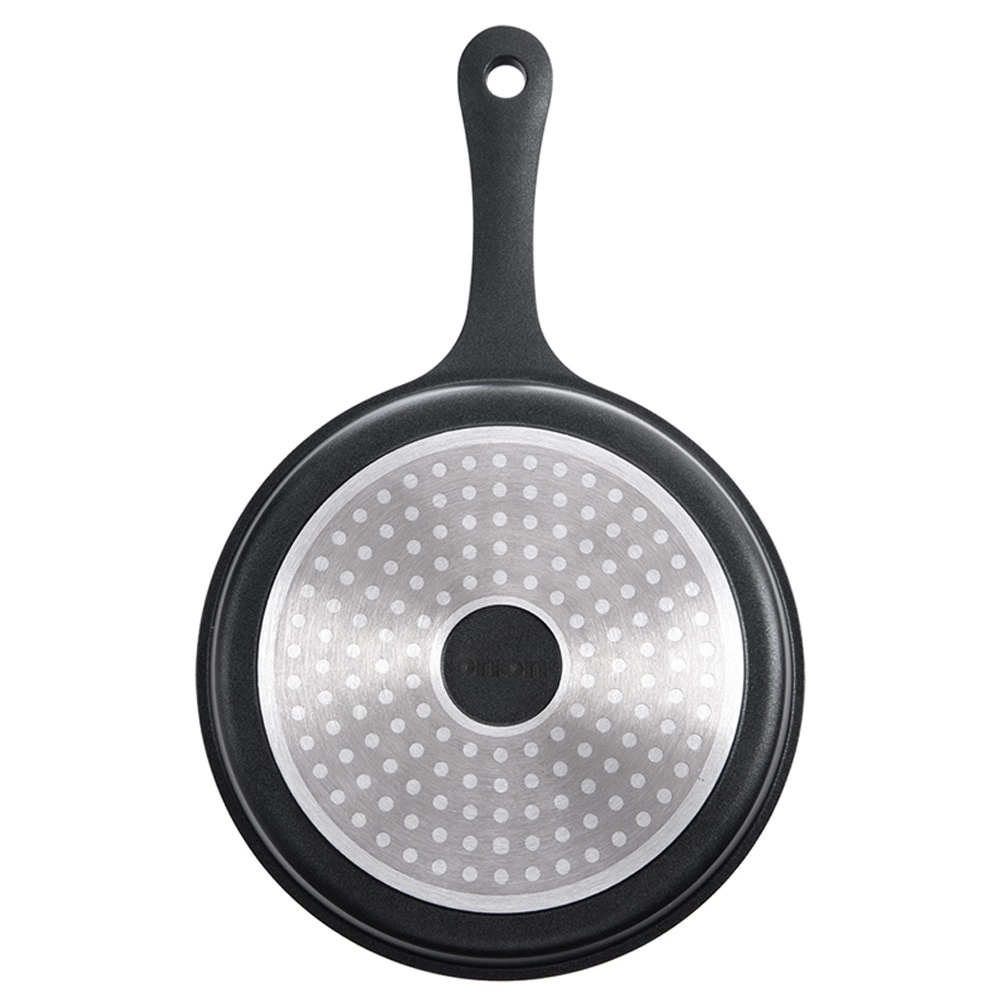 Poêle compacte en granit GRANDE de 16 cm de diamètre pour la cuisine quotidienne. Grâce au revêtement antiadhésif Pfluon Granit, vous préparez des plats avec un minimum de matière grasse, une répartition uniforme de la chaleur et une cuisson rapide et économe. Elle est compatible avec tous les types de plaques, y compris l’induction, passe au four et au lave-vaisselle, et possède une structure monobloc en aluminium robuste avec une prise en main confortable.