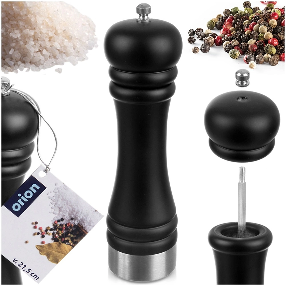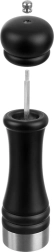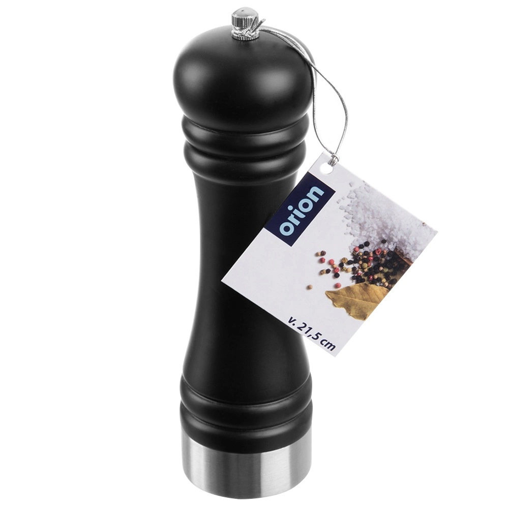 Moulin manuel élégant pour poivre, sel et autres épices, en bois résistant avec mécanisme de broyage en céramique. Grâce à sa forme ergonomique, il tient parfaitement en main et permet un broyage confortable avec granulométrie réglable. La finition noire mate et la base en acier inoxydable apportent du style à votre cuisine.