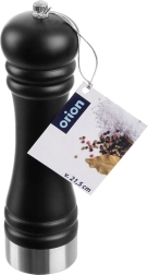 La manipulation est simple et fluide – le réglage précis de la granulométrie s’effectue via le bouton supérieur à vis. Le moulin convient pour le poivre, le sel et d’autres épices sèches, et trouve sa place aussi bien en cuisine domestique qu’en gastronomie. L’anneau inférieur en acier inoxydable facilite l’entretien et confère au produit un look moderne.