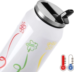 Le couvercle avec joint de haute qualité empêche les fuites, vous pouvez donc glisser la tasse sans crainte dans un sac à dos ou un sac à main. Pour des performances thermiques maximales, nous recommandons de le préchauffer à l’eau chaude ou de le refroidir à l’eau froide pendant environ 5 minutes avant usage. Le remplissage recommandé est de 90 % du volume.