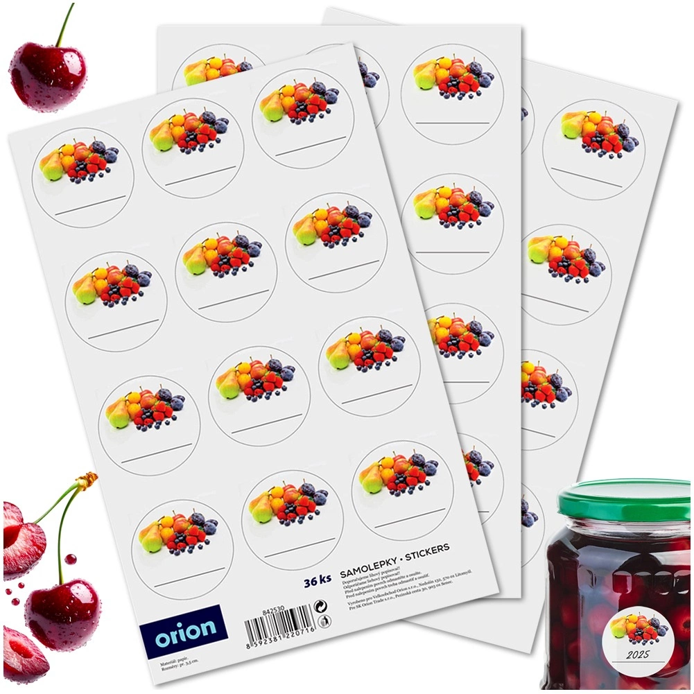 Pratique ensemble de 36 étiquettes autocollantes pour bocaux de 3,5 cm de diamètre, qui facilite le marquage des conserves maison, des épices et des bouteilles. La formule autocollante permet une application facile sans colle, le papier laminé à motif fruité est durable et offre une touche élégante. Chaque étiquette comporte un espace d’inscription (nom, composition, date), ce qui aide à organiser la cuisine et le garde-manger. Produit original de la marque ORION.