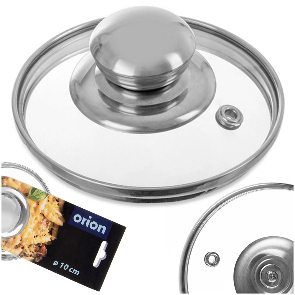 Couvercle universel en verre de 10 cm de diamètre avec bord en inox et poignée robuste. Convient aux petites casseroles, poêlons et poêles. Verre résistant à la chaleur jusqu’à 200 °C, transparent pour contrôler la cuisson sans soulever le couvercle, orifice d’évent contre la surpression et compatible lave-vaisselle. Accélère la cuisson et empêche les éclaboussures d’eau et de graisse.