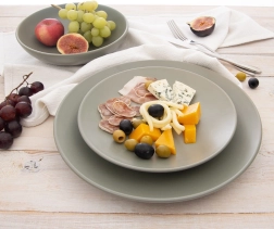 La surface mate vert olive et les lignes épurées apportent une touche fraîche et élégante à votre table, facile à assortir avec d’autres pièces.