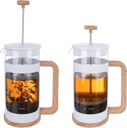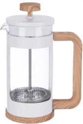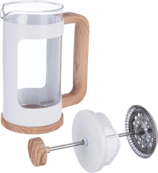 Élégant french press en verre d’une capacité de 400 ml pour préparer café, thé et infusions de plantes. Il combine verre borosilicate avec des éléments à effet bois et un cadre blanc. Équipé d’un fin filtre en acier inoxydable pour une boisson limpide sans marc, d’une anse ergonomique et d’un bec verseur précis pour un service confortable. Le récipient en verre est compatible lave-vaisselle. Qualité éprouvée de la marque ORION.