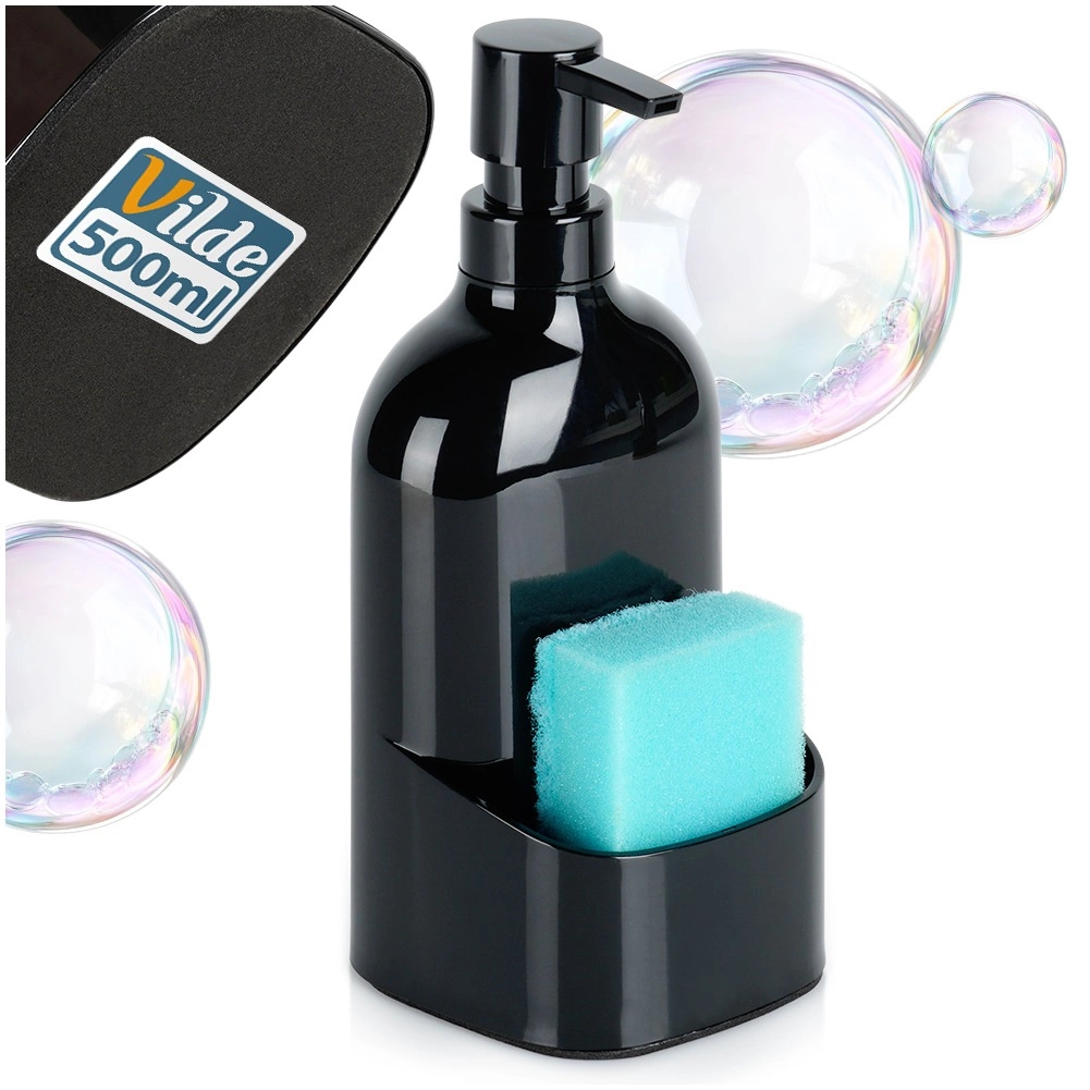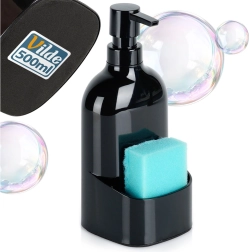 Distributeur de liquide vaisselle avec compartiment pour éponge, noir 500 ml