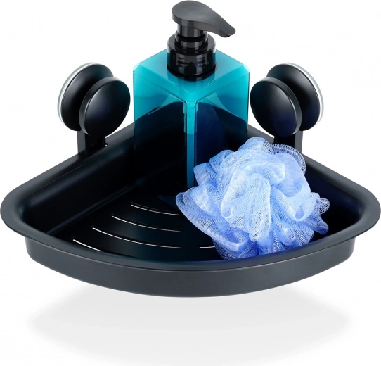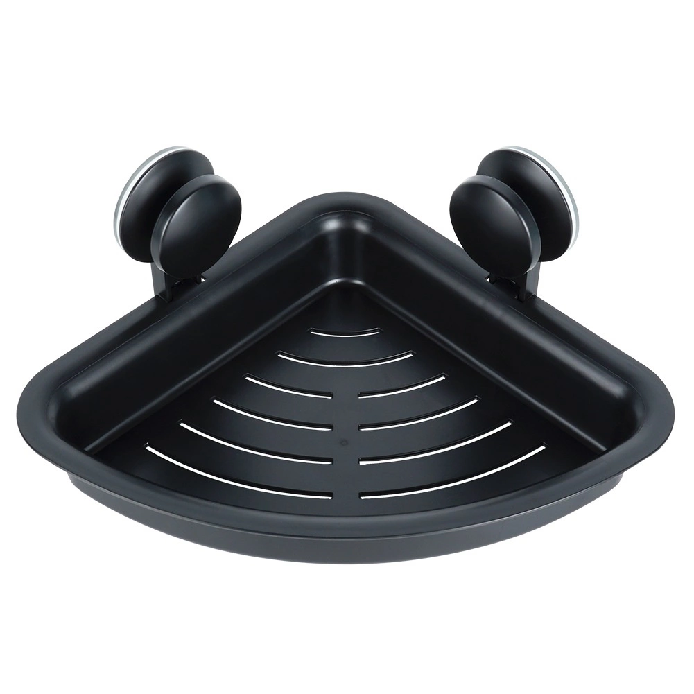 Étagère d’angle de douche avec ventouses, noire 28 × 22 × 12 cm