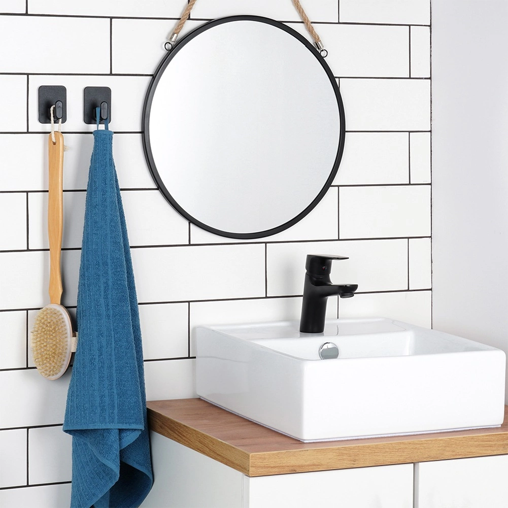 Des crochets noirs modernes avec base rectangulaire s’intègrent à tout intérieur et économisent de la place dans la salle de bain comme dans la cuisine.