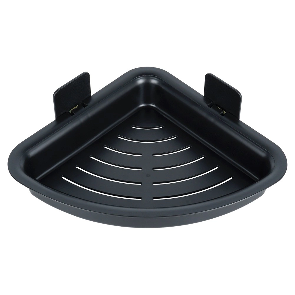 Étagère de douche d’angle noire, autocollante 28 × 22 × 8 cm