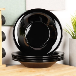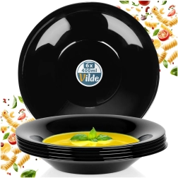 Élégant lot de 6 assiettes creuses en verre opalin noir, idéal pour le quotidien comme pour les occasions festives. Chaque assiette a un diamètre de 21,5 cm et une capacité de 400 ml, parfaite pour les soupes, pâtes ou salades. Le matériau résiste à la chaleur jusqu’à +100 °C, passe au lave-vaisselle et au micro-ondes. Style raffiné, usage polyvalent et entretien facile pour votre cuisine moderne.