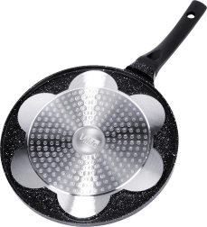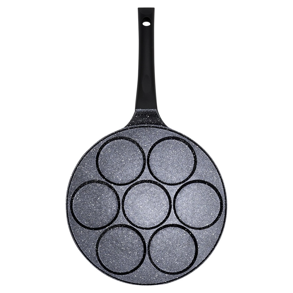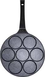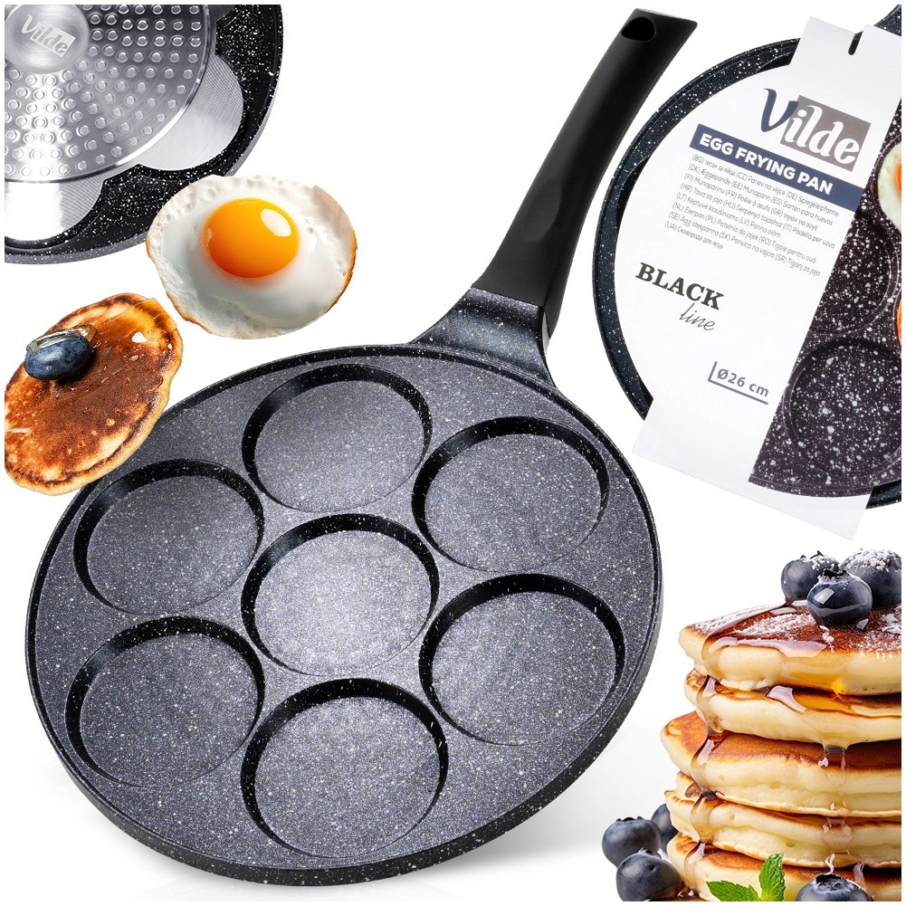 Découvrez la poêle élégante de la gamme BLACK LINE, qui garantit des portions parfaitement identiques et de jolis formats ronds pour le petit‑déjeuner. Grâce aux 7 empreintes, préparez en une fois des œufs, röstis ou blinis pour toute la famille. L’aluminium robuste avec revêtement granit antiadhésif limite les aliments qui attachent et facilite le nettoyage, tandis qu’une diffusion rapide et homogène de la chaleur raccourcit le temps de cuisson.