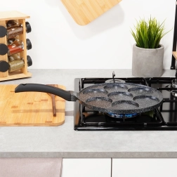 Sept cavités peu profondes de 8 cm de diamètre forment des blinis et des œufs uniformes – un dressage élégant sans effort.