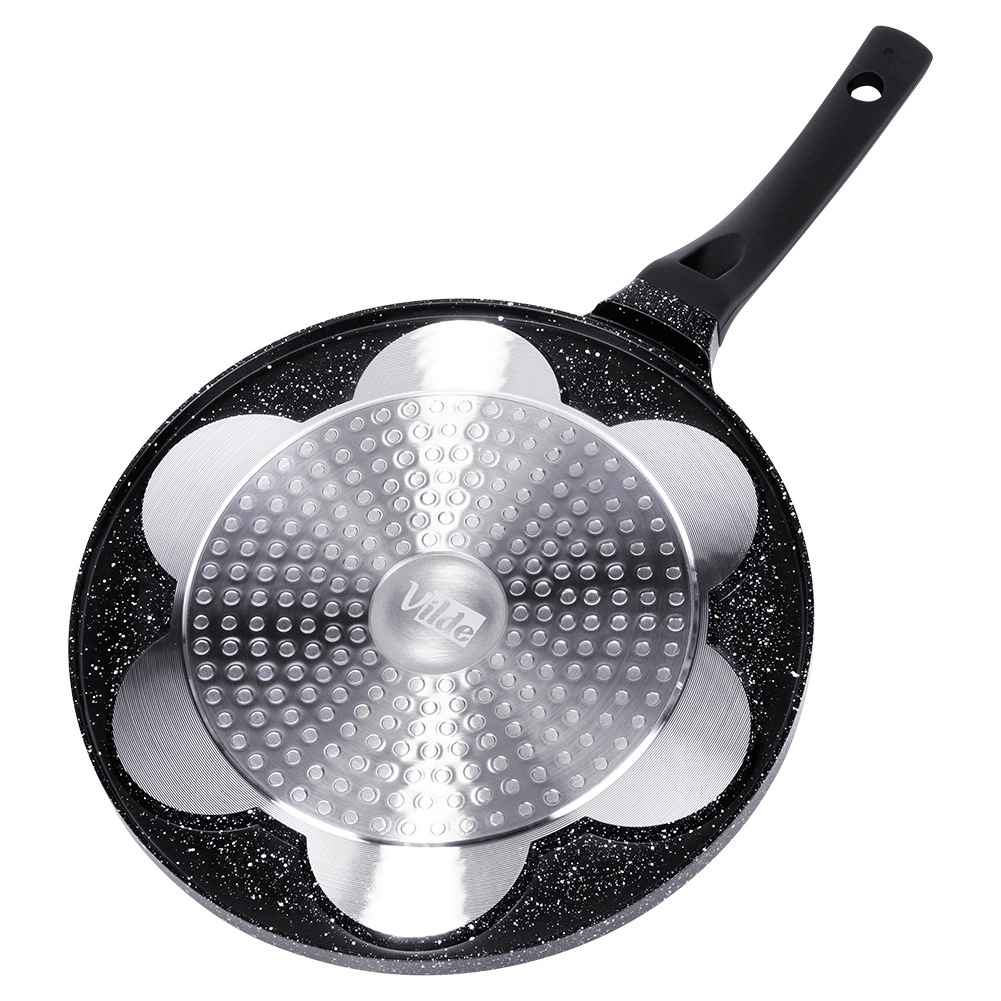 Le fond multicouche conduit efficacement la chaleur sur toute la surface de la poêle, réduit le temps de cuisson et assure une cuisson homogène.