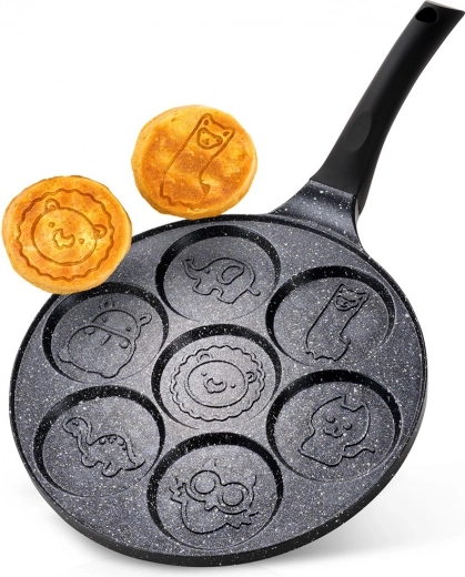 Petit-déjeuner ludique sans effort : cette poêle à œufs en granit de 26 cm de diamètre avec 7 moules de 8 cm de diamètre crée des crêpes épaisses ou des œufs au plat parfaitement ronds avec de jolis reliefs d’animaux. Grâce au revêtement antiadhésif effet granit, un minimum d’huile suffit, la répartition uniforme de la chaleur garantit une cuisson homogène et la poignée Soft Touch offre une prise en main sûre et confortable. Compatible avec tous les types de cuisinières, y compris l’induction, et lavable au lave-vaisselle.