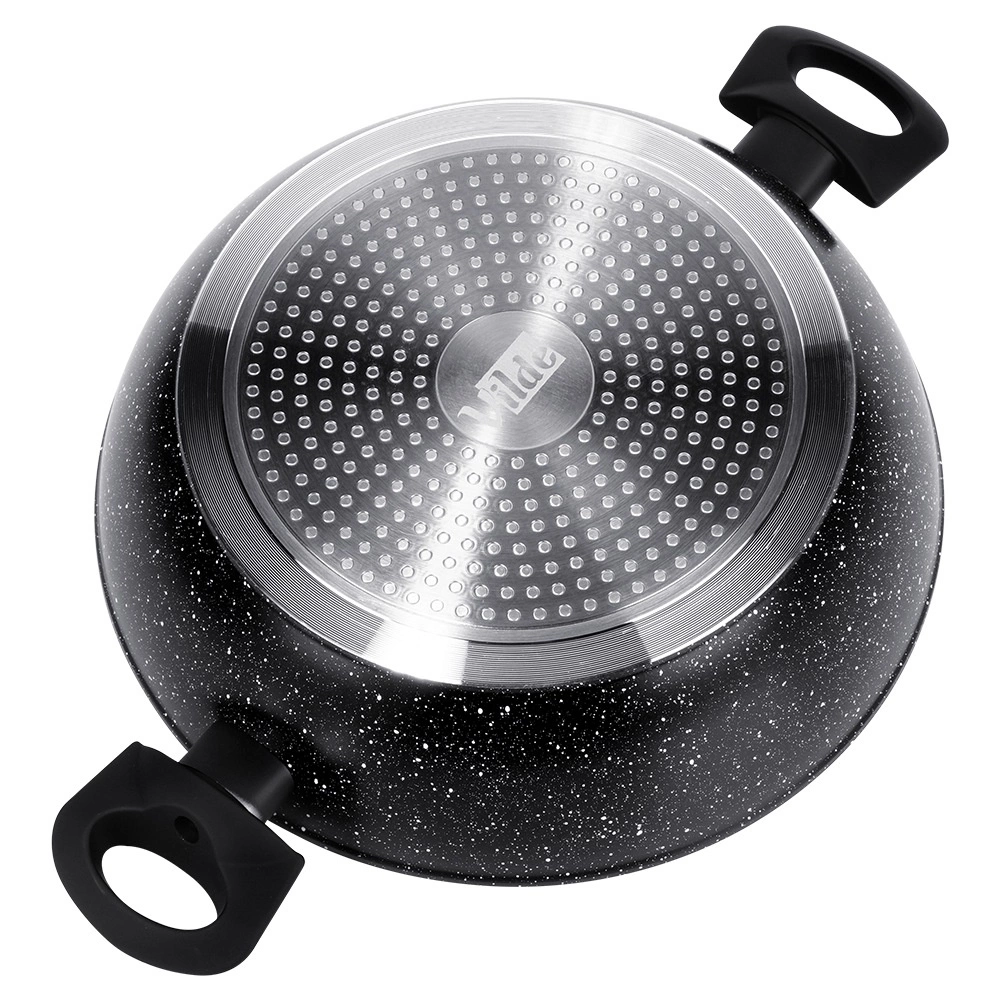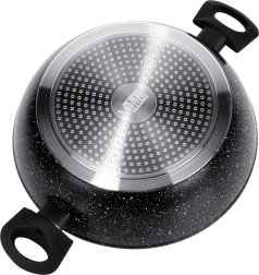 Grâce à sa large base et ses bords hauts, elle est idéale pour saisir des légumes, des mélanges de viande et des sauces, ainsi que pour un mijotage en douceur. L’insert induction en inox assure une montée en chaleur rapide et des économies d’énergie. Deux poignées latérales Soft Touch garantissent une manipulation sûre.
