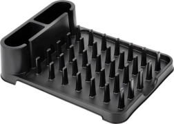 Pratique égouttoir à vaisselle de couleur noire élégante, dimensions 41 × 32,5 × 11 cm, qui facilite le séchage des assiettes, verres et couverts tout en protégeant le plan de travail de l’eau. Il dispose d’une structure solide et résistante, d’un organisateur séparé pour couverts et d’un fond étudié pour l’évacuation de l’eau afin de garder l’espace autour de l’évier propre et ordonné.