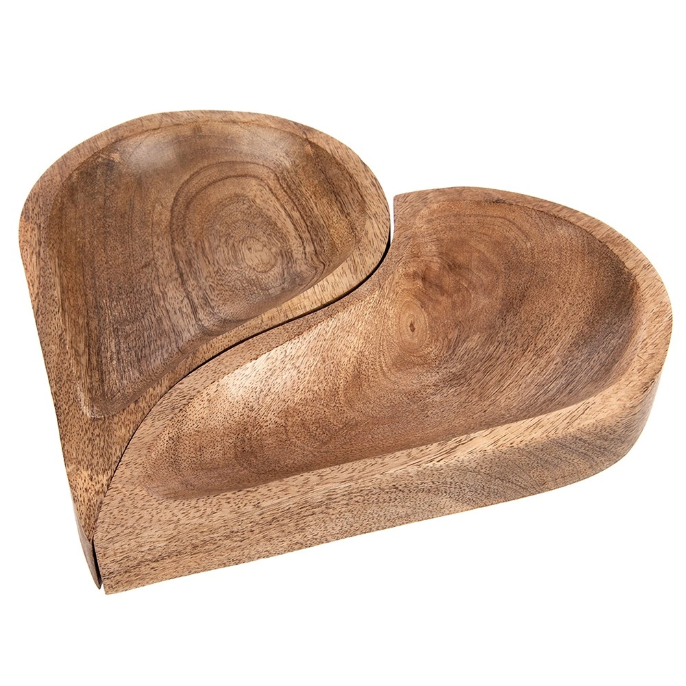 Assiettes de service en bois de manguier – cœur, lot de 2
