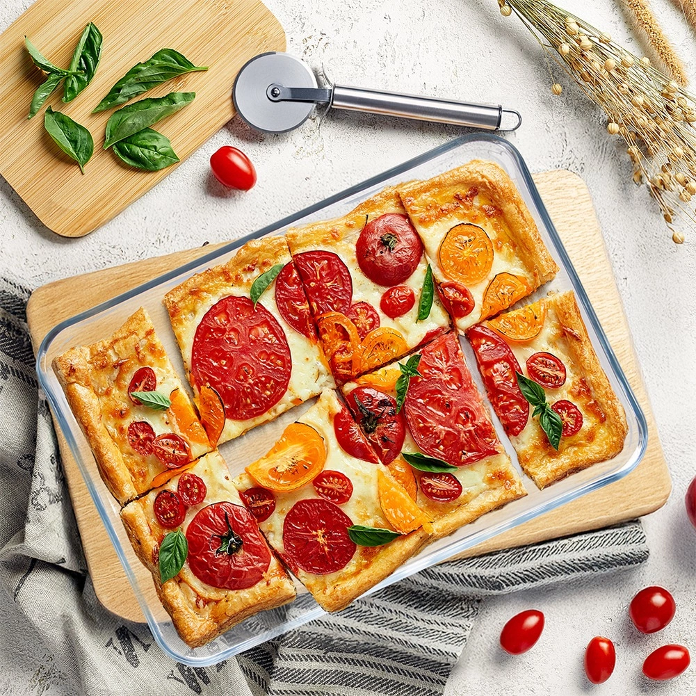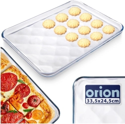 Plat en verre borosilicaté universel de 33,5 × 24,5 × 2 cm pour la cuisson, le réchauffage et le service. Grâce au léger relief du fond, il est élégant et pratique – il assure une meilleure circulation de l’air et limite l’adhérence. Compatible avec le four, le micro-ondes, le lave-vaisselle et le congélateur (−40 °C à +300 °C).
