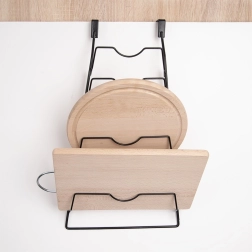 Gardez une cuisine ordonnée et exploitez chaque centimètre. Ce support robuste pour couvercles, d’une capacité jusqu’à 6 pièces, s’accroche simplement à la porte d’armoire de cuisine (jusqu’à env. 2,5 cm d’épaisseur) ou se visse au mur. Son design loft minimaliste noir s’accorde aux cuisines modernes comme classiques.
