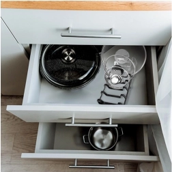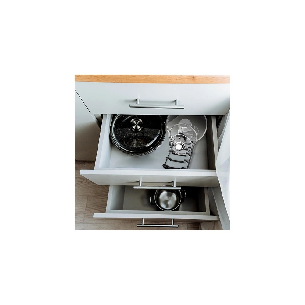 Les rainures séparées maintiennent couvercles et assiettes en position verticale de façon stable, pour tout avoir immédiatement sous la main, sans désordre inutile.