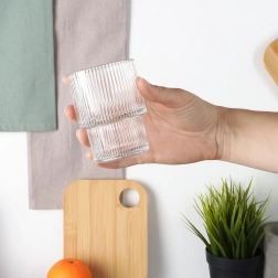 La texture verticale du verre assure une tenue confortable et confère aux verres un look moderne qui se distingue à chaque service.
