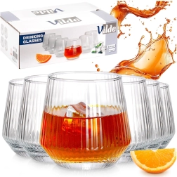 Élégant set de six verres de 350 ml avec une structure côtelée pour une prise en main sûre et un look moderne. Fabriqués en verre épais de haute qualité, idéals pour l’eau, les limonades, les cocktails et le whisky. Les verres sont compatibles lave-vaisselle et conviennent parfaitement à une utilisation quotidienne à la maison comme en restauration.