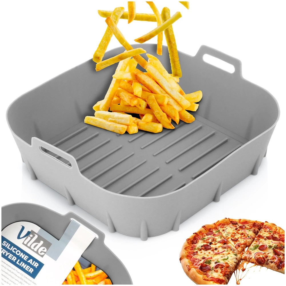 L’insert en silicone pour air fryer est idéal pour une cuisine plus saine et plus propre. Il évite le contact direct des aliments avec le panier de la friteuse, de sorte qu’aucun résidu ni graisse ne reste à l’intérieur. La surface antiadhésive facilite le service et l’entretien; le matériau est sûr pour le contact alimentaire et n’altère pas le goût des plats.
