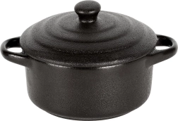 Petite cocotte avec couvercle d’une capacité de 150 ml en porcelaine de qualité, dans une élégante couleur noire. Grâce à la répartition uniforme de la chaleur, elle est idéale pour les plats sucrés et salés, des mini gratins et œufs aux desserts ou tapas. Elle dispose de poignées latérales pratiques pour un transport facile, d’un couvercle pour préserver le moelleux et les arômes et convient au four, micro-ondes et lave-vaisselle.