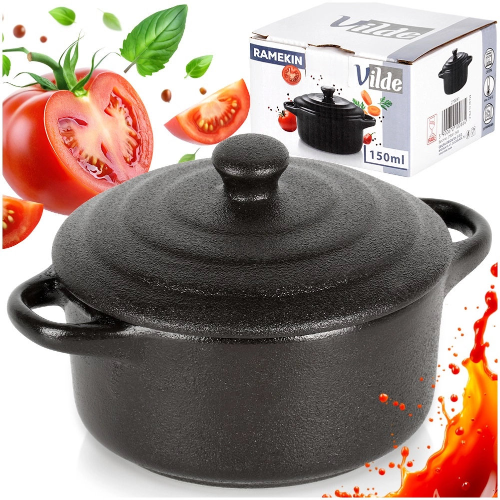 Cette cocotte en porcelaine avec couvercle permet de cuire, gratiner et servir dans un seul récipient. Parfaite pour des portions individuelles – des œufs cocotte, mini gratins, desserts jusqu’aux tapas. La finition noire apporte une touche élégante à toute table et valorise la présentation.