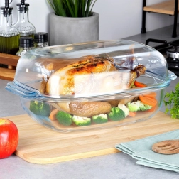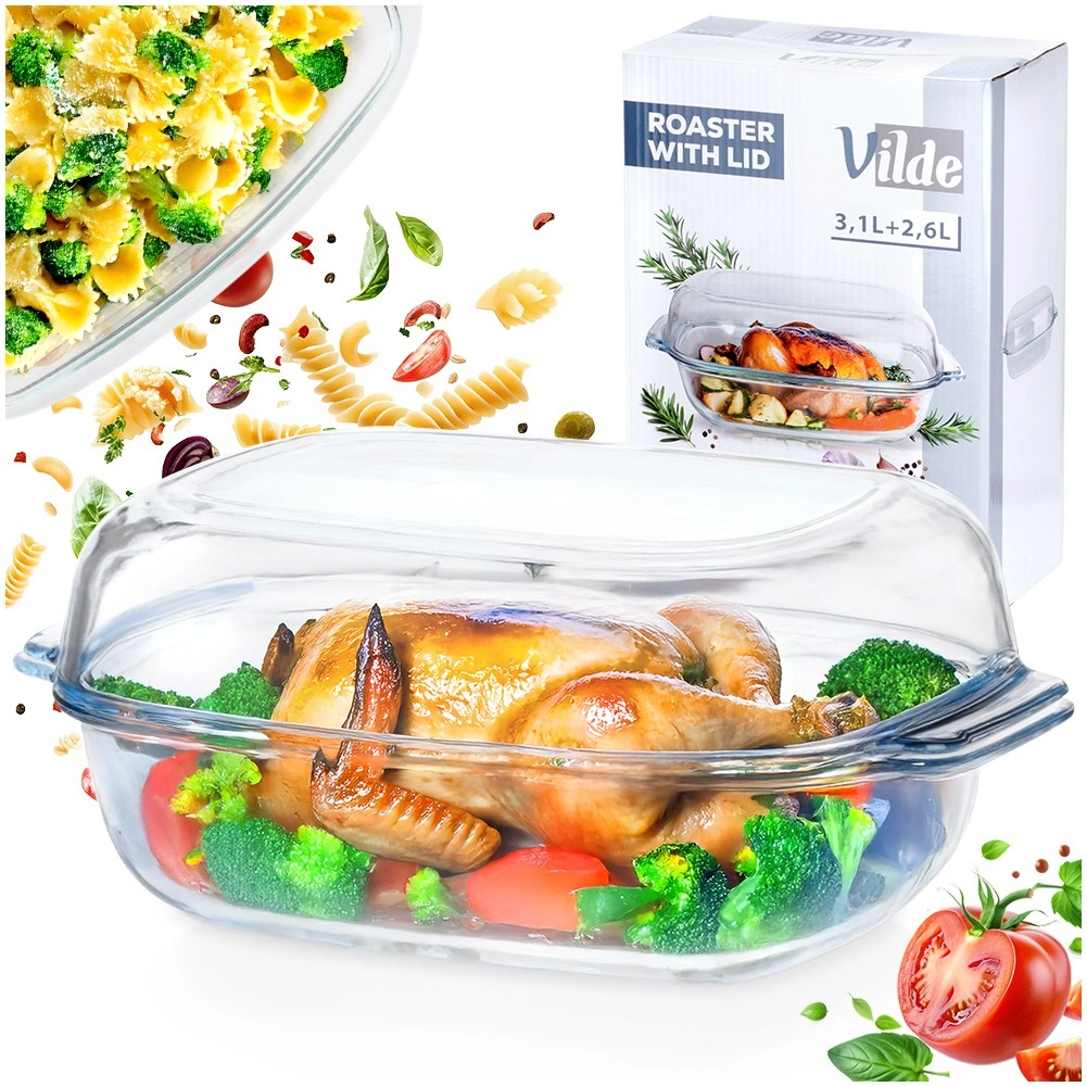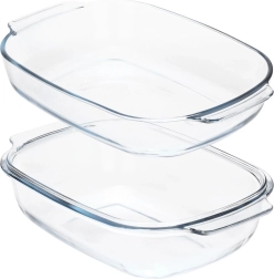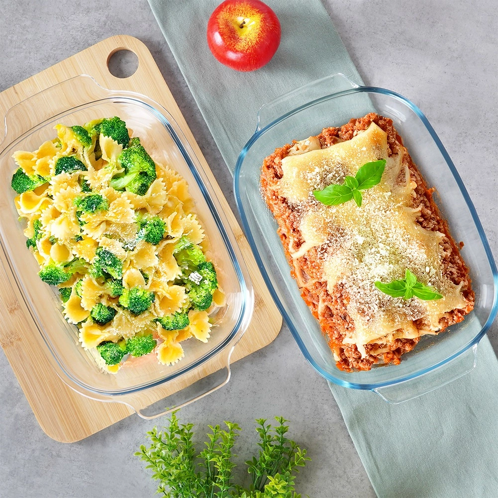 Ce set en deux parties comprend deux plats rectangulaires résistants à la chaleur, à utiliser séparément ou ensemble – l’un peut servir de couvercle pratique qui conserve l’humidité et le moelleux des plats. Grâce au verre borosilicaté résistant, il supporte des températures de -30 °C à +400 °C et est idéal pour gratins de viande, lasagnes, pommes de terre, légumes et desserts au four.
