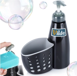 Distributeur pratique de liquide vaisselle avec compartiment intégré pour éponge, pour garder votre espace d’évier propre et organisé. Le style noir avec des détails gris s’intègre à toutes les cuisines. Capacité 370 ml, dimensions compactes et dosage précis par pompe pour une vaisselle confortable et un accès rapide aux accessoires.