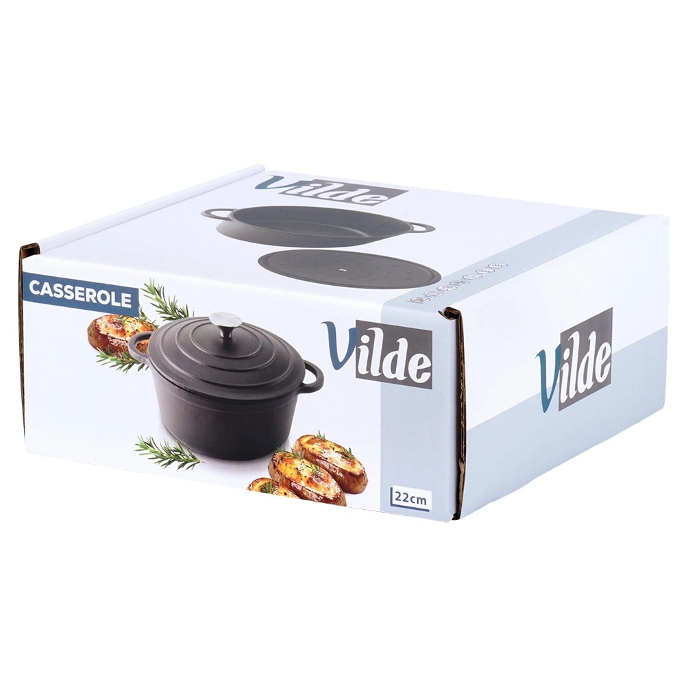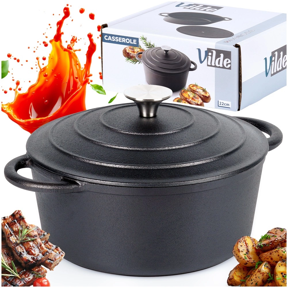 La marmite en fonte CAST LINE de 22 cm de diamètre se distingue par sa construction massive et ses excellentes propriétés thermiques. Elle convient à la cuisine quotidienne, au mijotage de goulaschs, de soupes, de plats gratinés et à la cuisson de viandes au four. Grâce à la fonte, elle chauffe uniformément et retient la chaleur de manière fiable.