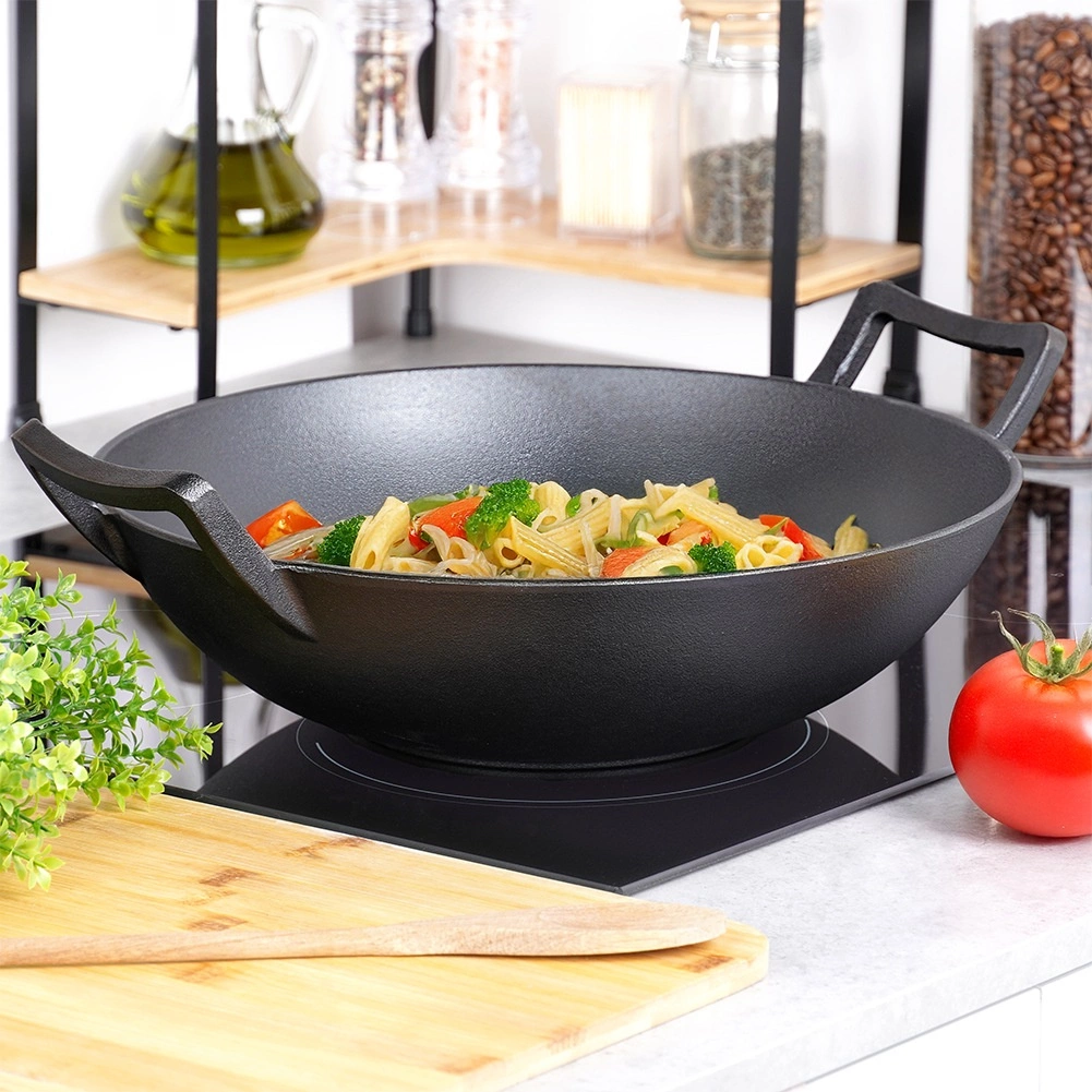 La fonte est un matériau éprouvé pour le wok – elle maintient des températures élevées, indispensables pour le sauté rapide, la friture et la cuisson gratinée. Ce wok de 36 cm offre un corps profond et spacieux pour de généreuses portions de pâtes, de légumes, de viande et de plats inspirés de la cuisine asiatique. Grâce à sa résistance aux hautes températures, vous pouvez l’utiliser sans crainte sur la cuisinière, sur le gril et au four.