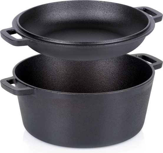 Cocotte en fonte avec couvercle 2-en-1 (couvercle utilisable comme poêle/plat à gratin)