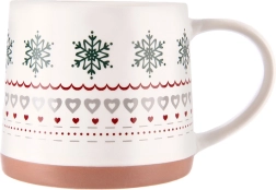 Élégant mug en porcelaine d’une capacité de 380 ml avec motif hivernal, idéal pour boire au quotidien café, thé et cacao. Grâce à sa porcelaine de qualité, à sa anse confortable et à sa compatibilité lave-vaisselle et micro-ondes, profitez de chaque gorgée avec confort et style.