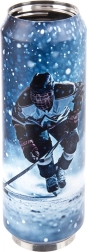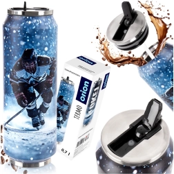 Gobelet isotherme stylé en forme de canette, capacité 700 ml, qui maintient vos boissons longtemps à la température idéale. Grâce à sa double paroi avec isolation sous vide, il convient aux boissons chaudes et froides. Il possède un couvercle étanche avec embout rabattable et paille, est en acier inoxydable et est orné d’un motif de hockey – idéal pour les voyages, le travail et le sport.
