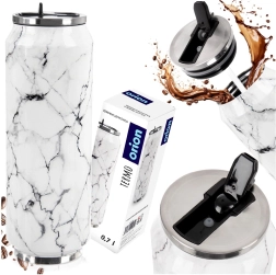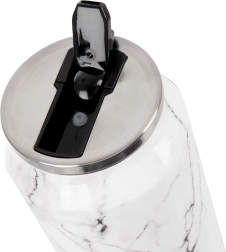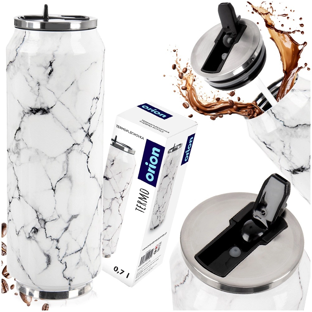 Gobelet isotherme élégant en acier inoxydable de couleur blanche à motif marbré, compagnon idéal pour le travail, la voiture et les excursions. Le couvercle pratique avec embout rabattable et paille interne permet de boire confortablement sans incliner. Le joint en silicone étanche empêche les fuites, vous pouvez donc le glisser en toute sécurité dans un sac à dos ou un sac à main.