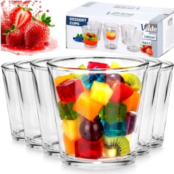 Servez avec style panna cotta, tiramisu, crèmes dessert, salades de fruits ou mini entrées. Ces verrines en verre de 180 ml sont parfaites pour la maison, les mariages, le catering et les fêtes d’enfants. Le verre translucide met en valeur les couleurs, les textures et le jeu de couches de vos desserts.