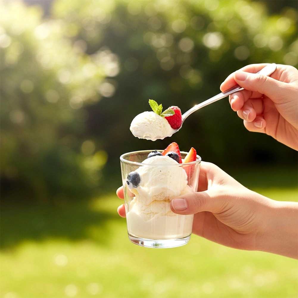 Le verre clair met en valeur les couleurs et les couches – parfait pour la panna cotta, le tiramisu ou les salades de fruits. Idéal sur une table de mariage comme à la maison.