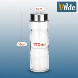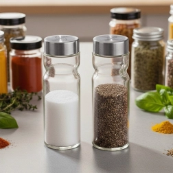 Verre transparent épais et couvercles métalliques solides au fini argenté élégant allient longue durabilité et contrôle facile du contenu.