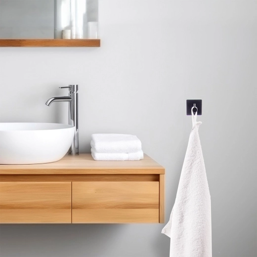 Pratique, l’ensemble de deux crochets adhésifs RADKA en élégant coloris noir est idéal pour la cuisine comme pour la salle de bain. Grâce à la fixation par bande adhésive robuste, ils tiennent de manière fiable sur les surfaces planes sans perçage. Leur forme carrée moderne et leur fabrication en métal résistant garantissent une utilisation durable. Convient pour les serviettes, torchons, peignoirs et vêtements légers. Installation facile, forte adhérence et utilisation universelle dans chaque foyer.
