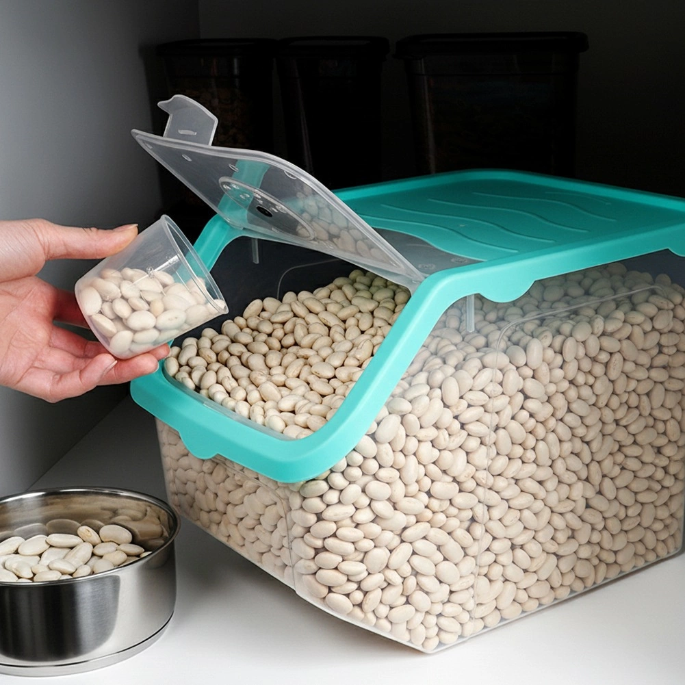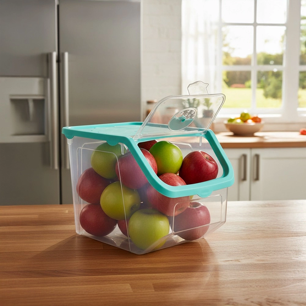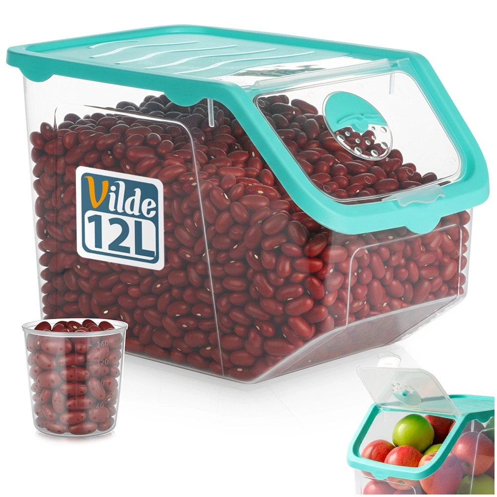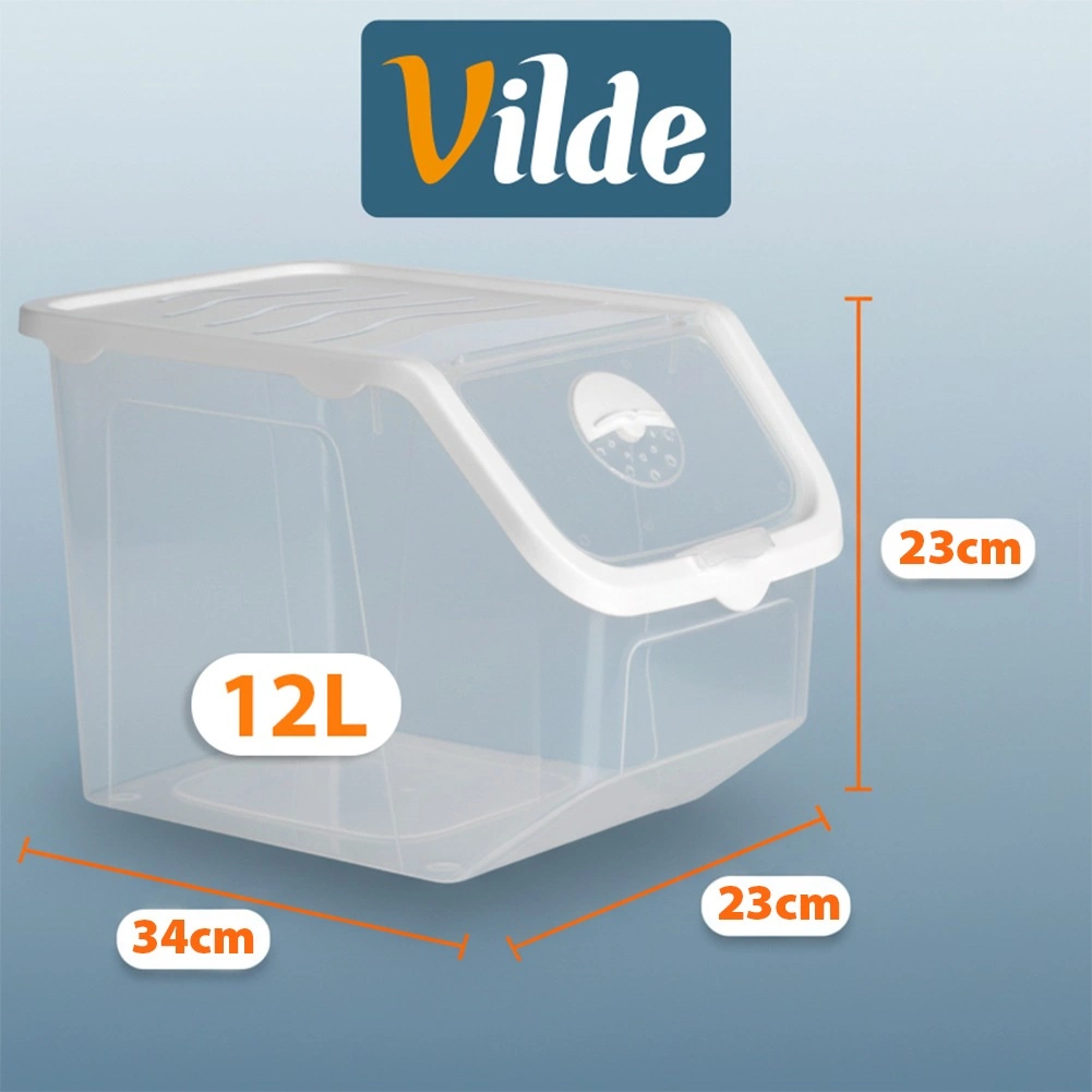Gardez vos aliments frais plus longtemps et toujours à portée de main. La boîte transparente de 12 l est un excellent choix pour stocker oignons, pommes de terre, ail, fruits, mais aussi la nourriture pour animaux de compagnie ou des poudres. La trappe à clic pratique permet de recharger ou de prélever rapidement la quantité souhaitée, tandis que les parois transparentes facilitent le contrôle du contenu.