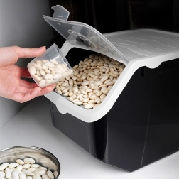 Idéal pour pommes de terre, oignons, ail, mais aussi pour pâtes, légumineuses, nourriture pour animaux domestiques ou mélanges en poudre. Le plastique de qualité sans BPA est apte au contact alimentaire, compatible congélateur et lave-vaisselle. Le doseur pratique avec repères 40–160 ml facilite un dosage précis.